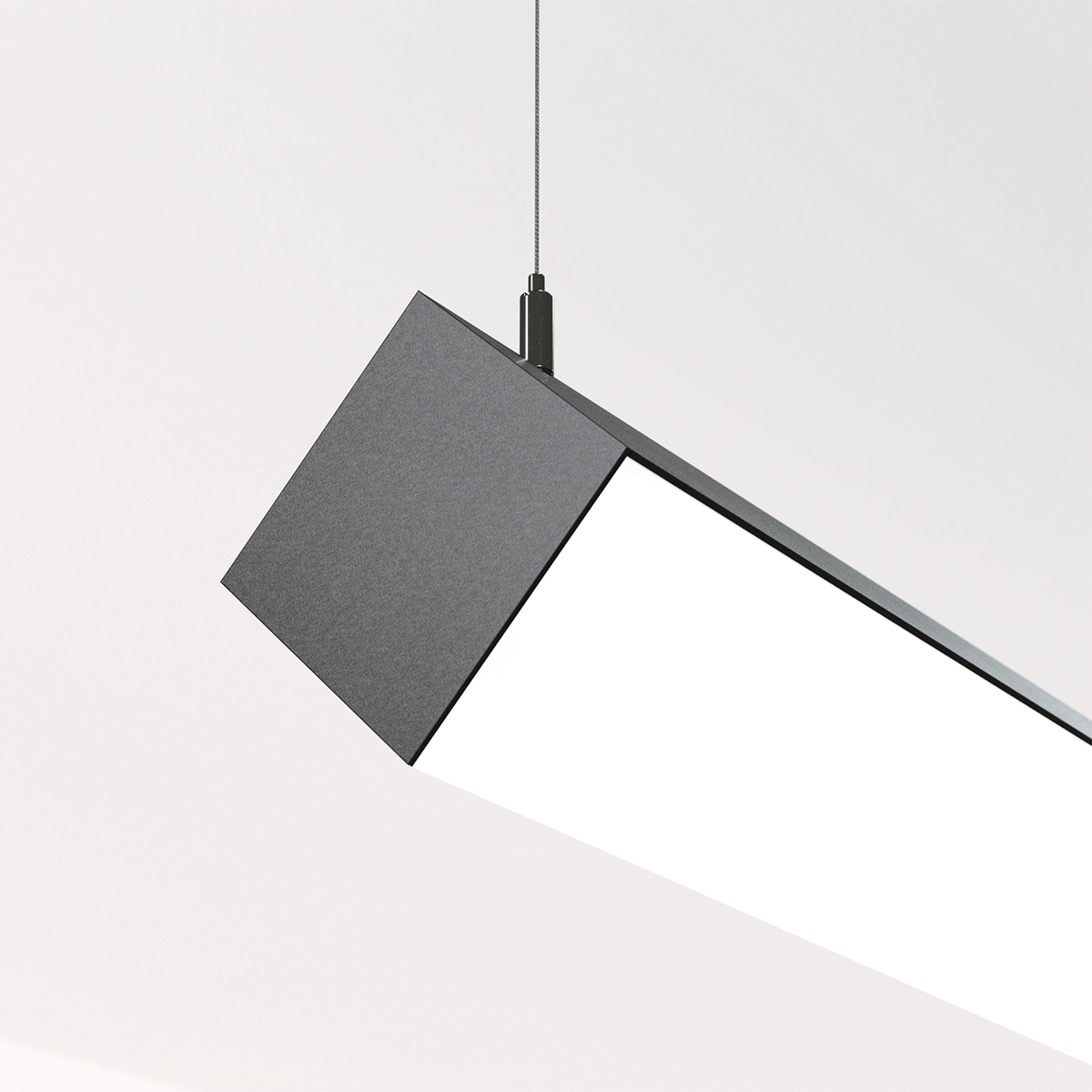 Noventa 3.5 is a suspended, wall/surface or recessed luminaire that creates an architectural 90 degree corner. For two-sided illumination around a perimeter, use a wall/surface model. Hang a suspended “L” model for illuminating a wall surface and to provide ambient downlight. Hang a suspended “diamond” model to provide a wide swath of direct ambient downlight. Contact factory for recessed options. Integral Driver.